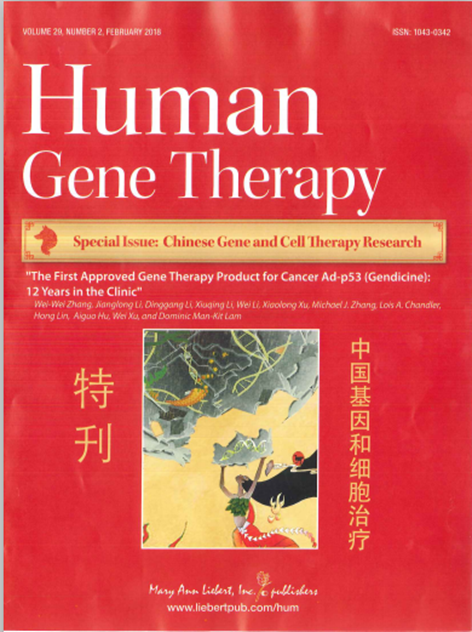 2018年新春,《Human Gene Therapy》发特刊,对全球首个治疗癌症的基因药今又生临床应用12年进行总结报道,题目是“The First Approved GeneTherapy Product for Cancer Ad-p53 (Gendicine) :12 Yearsin the Clinic ”。